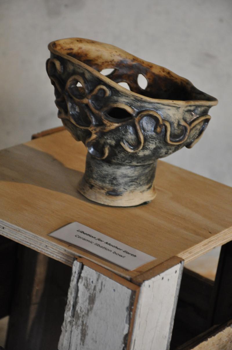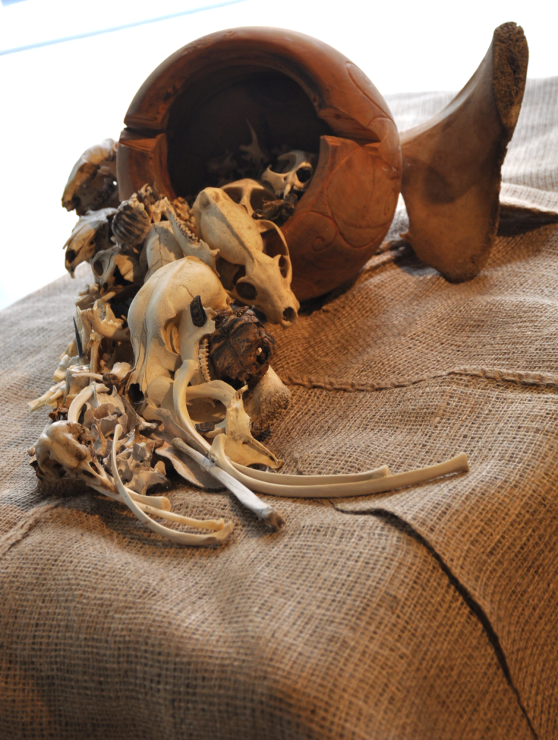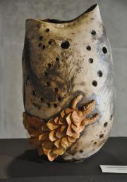 - Ceramic hominid on found cow's vertebrae (Sitting Hominid)
