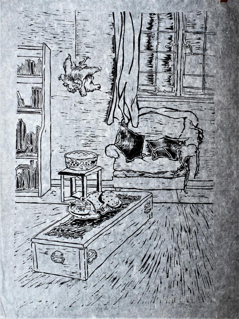 - Pen and ink drawing on found aeronautical map