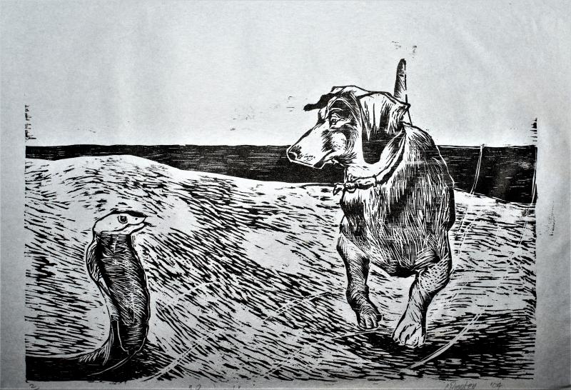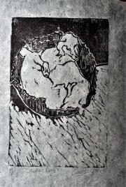 - Ceramic hominid on found cow's vertebrae (Sleeping Hominid)